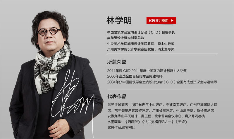 林先生学验俱丰,其所主持之集美组设计机构,历年来完成许多表现优异的项目作品,屡获好评;尤其最新规划的丽水养生文化园,从建筑至室内,均融汇了传统与现代的语彚与境界,衔接自然,不露痕迹,令人激赏。