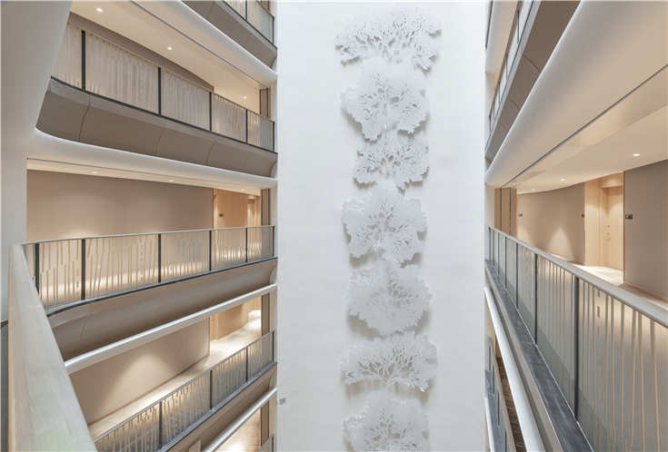 设计沿袭凯悦嘉轩年轻时尚、商务休闲的品牌理念,撷取极具三亚文化特色的视觉符号,为宾客提供清新自然行旅体验。整体造型设计将动感的“波浪”引入静止的空间,在同样充满变化的异形建筑体内延续并展开海洋絮语,唤醒商旅时间的奇妙遐想。海洋、沙滩、自然森林等意象被运用至不同区域的家具陈设中,柔美鲜艳的色彩和独特舒适的材质纹理调合出一个个活色生香的体验场景,激荡着温润人心的滨海城市之歌。