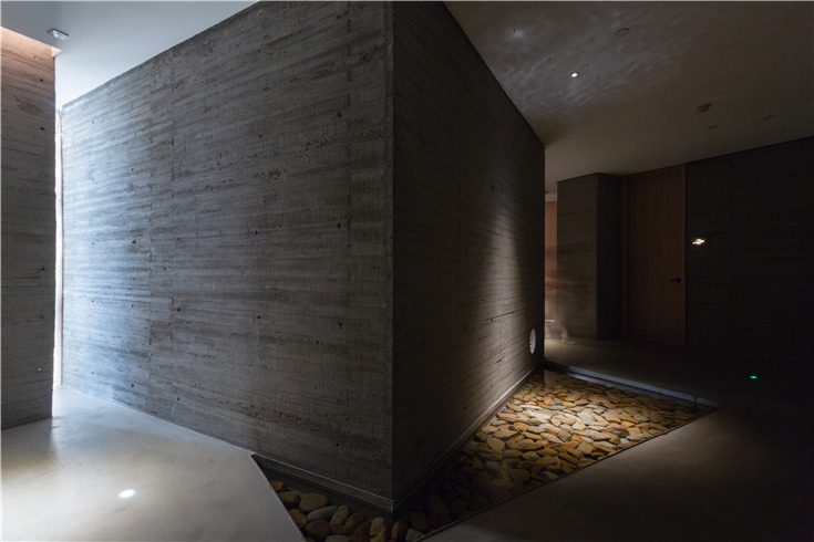我们通过空间的光与影、水的动与静的整体变化来营造一种空幻美:光线透过缝隙进入室内,随着时间变化,光斑在向前游走;水滴点在水面,激起转瞬即逝的波纹;空间虚实相间,时有时无。通过这一系列呈现空花水月的理念,营造出了一种美的空幻或者说是空幻的美。实中有虚、有中似无,仿佛一切都存在,又仿佛一切都不存在,如同回归自心、反观自照、明心见性,给我们多一点静思、能与自己对话的空间。